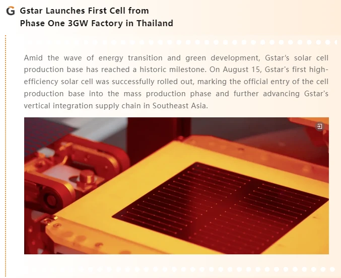 From November 13 to 14, the Solar & Storage Live Barcelona 2024 was successfully held at the Fira Barcelona Montjuic in Spain. Gstar showcased its CleanEdge Modules, N-type Solar Cells, and Silicon Wafers at the event, demonstrating its···